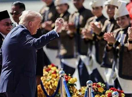 Uçaktan indikten sonra Malezya Başbakanı Enver İbrahim tarafından karşılanan Trump, tören alanında kendisi için düzenlenen geleneksel dans gösterisini izledi. Sonrasında müziğe ayak uyduran ABD Başkanı, dansçılara kısa süre eşlik etti.