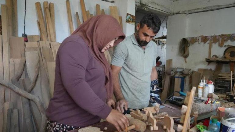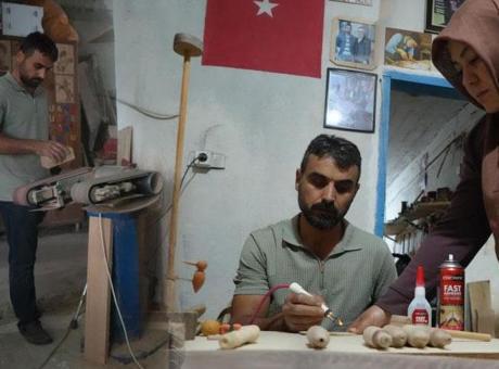 Eşi Nesrin Yazıcı ise, "Eşim bir kurs sayesinde hayata yeniden tutundu. Kaymakamlığın desteğiyle atölyemize makine aldık, üretimimizi büyüttük. Topaç en çok sattığımız ürün. Hatta Cumhurbaşkanlığı Külliyesi'ne de hediyemiz oldu. Tamamen doğal ve el yapımı oyuncaklar üretiyoruz. Hem çocuklarımız hem müşterilerimiz için doğallıktan vazgeçmiyoruz" ifadelerini kullandı.