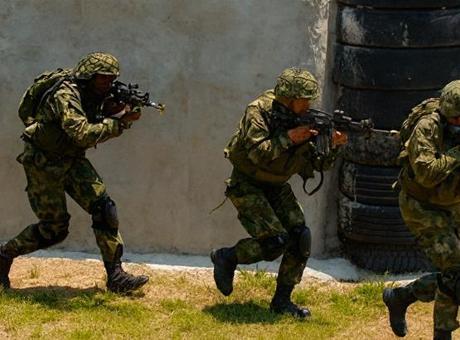 Kolombiya ordusunda görev yapan askerler Cali şehrinde devriye faaliyetine hazırlanıyor.