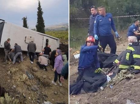 Denizli’de korkunç kaza: Tur otobüsü şarampole devrildi, 1 ölü, 32 yaralı