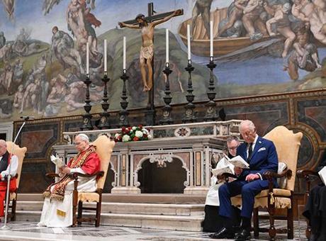 İngiltere Kralı Charles, Papa 14'üncü Leo ile bir araya geldi. Charles ve Papa Sistine Şapeli'nde birlikte dua etti. Tarihi buluşma, 491 yıl sonra İngiliz monarşisi ile Katolik Kilisesi arasındaki ilk ortak ibadet oldu. Ayinde, Latin ilahileri ve İngilizce dualar, şapelde yankılandı. Papa 14'üncü Leo ve İngiliz Kilisesi (Anglikan) Başpiskoposu Stephen Cottrell'in yönettiği ayinde Sistine Şapeli Korosu ve iki kraliyet korosu yer aldı.