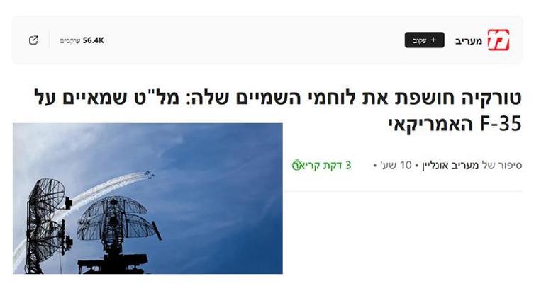 MİLLİYET.COM.TR / İsrail’in önde gelen gazetelerinden Maariv, Türk savunma sanayisindeki son gelişmeleri “Türkiye gök savaşçılarını ortaya çıkardı, ABD F-35’ini tehdit eden bir dron” manşetiyle duyurdu.