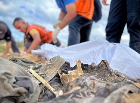 Hamas ile İsrail arasında varılan ateşkesin ardından Filistin sivil savunma ekipleri, İsrail'in Gazze'nin orta kesimindeki Netzarim Koridoru'nda öldürdüğü Filistinlilerinin iskelet kalıntıların toplamaya başladı.
