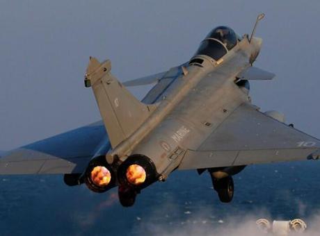 AFP ve sosyal medyadaki enkaz görüntülerinin Rafale'e ait olduğu öne sürüldü.