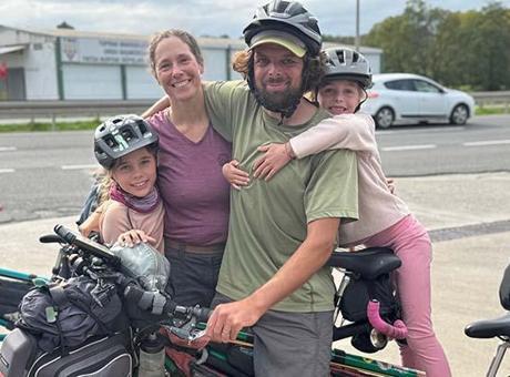 Kanada’da yaşayan metal teknisyeni Benjamin Rembeault, kendisiyle aynı mesleği yapan eşi Vassy Rembeault ve çocukları Morgan (8) ve Milla (7) ile özel olarak tasarladıkları çift pedallı bisikletleriyle dünyayı geziyor.