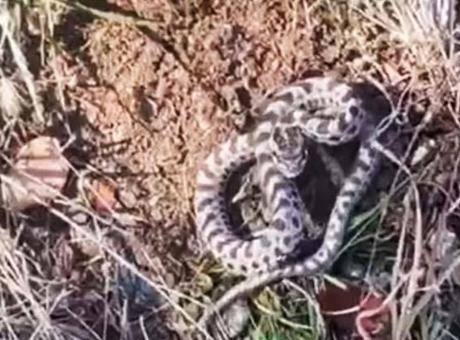 Karabük'ün Eskipazar ilçesinde bir vatandaş, mantar topladığı sırada karşılaştığı engerek yılanını cep telefonu kamerasıyla kaydetti.