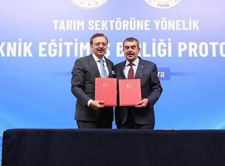 TOBB Başkanı Rifat Hisarcıklıoğlu ise tarım sektöründe, modern tarım tekniklerini bilen, gıda teknolojileri ve laboratuvar uygulamalarına hakim, hayvancılıkta bakım ve sağlığı profesyonelce yürütebilen tekniker ve teknisyenlere büyük ihtiyaç olduğunu vurgulayarak, "Bir tarafta üretimin teknolojik dönüşümü hızlanırken, diğer tarafta sahada uygulayacak, bakımını yapacak ve yenilikleri uygulamaya koyacak ara eleman açığı devam etmektedir. Bu boşluk, verimlilik, kalite ve rekabet gücümüzü doğrudan etkiliyor, gençlerimiz için sürdürülebilir istihdam fırsatlarının önünde bir bariyer oluşturuyor. İşte tam da bu nedenlerle bu protokolün önemi büyüktür. Milli Eğitim Bakanlığımız ile TOBB arasında bugün imzalanacak olan bu iş birliğiyle, çeşitli illerde tarım alanındaki 30 meslek lisesini Ticaret Borsalarımız ile Ticaret ve Sanayi Odalarımızla eşleştireceğiz. Tarım meslek liselerimiz, öğrencilere hem teorik bilgiyi hem de gerçek üretim ortamlarında uygulamalı deneyimi verecek. Dolayısıyla mezun olduklarında doğrudan üretim süreçlerine katılabilecek, işletmelerin aradığı nitelikte elemanlar haline gelecekler" dedi.