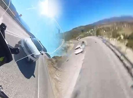 Muğla’da feci motosiklet kazası! Kask kamerası sürücünün şarampole yuvarlanmasını kaydetti