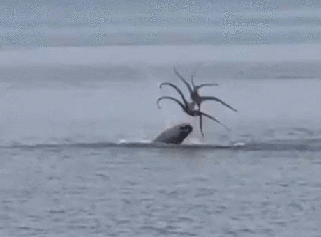 Çeşme açıklarında, nesli tükenmekte olan bir tür olan Akdeniz foku avlanırken görüntülendi. Akdeniz fokunun avladığı ahtapotla suda verdiği mücadele çevredekiler tarafından görüntülendi.