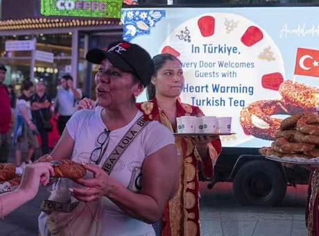 Türk simidi ve Türk çayı, "Anadoludakiler" projesinin tanıtımı çerçevesinde, Times Meydanı'nda New Yorklulara ikram edildi.
