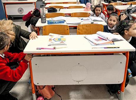 Ankara Haydar Aliyev Ortaokulu’nda da MEB AKUB üyeleri, öğrencilere deprem öncesinde ve esnasında yapılması gerekenlere ilişkin bilgilendirmede bulundu, ardından gerçekleştirilen tatbikatta, öğrenciler siren uyarısıyla çök-kapan- tutun tekniğini uyguladı.