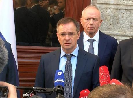 Medinskiy, İstanbul'da Cumhurbaşkanlığı Dolmabahçe Çalışma Ofisi'nde Dışişleri Bakanı Fidan ile görüştükten sonra gazetecilere açıklamalarda bulundu.