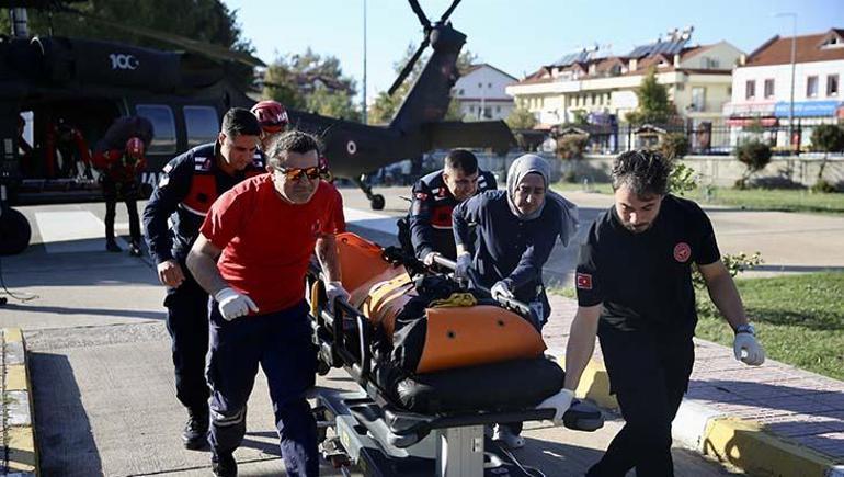 Helikopterle bulundukları alandan alınan kazazedeler, Fethiye Devlet Hastanesine getirildi.