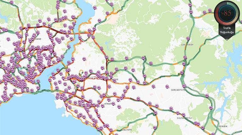 Megakentte trafik yoğunluk haritası 17.05 itibariyle yüzde 85 olarak kaydedildi.