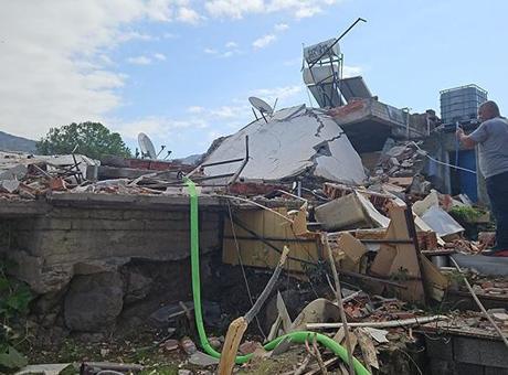 Patlamanın şiddetiyle evin çatısı çöktü, evin yanındaki iki mermer işletmesinde hasar oluştu.