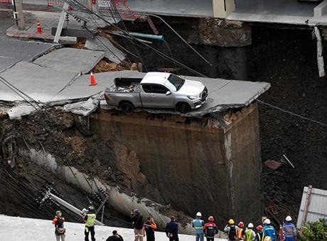 Tayland'ın başkenti Bangkok'un Dusit bölgesinde yer altı inşaatı devam eden bir yolda yerel saatle 07.00'de çökme meydana geldi. Aralıklarla devam eden toprak kaymaları sonucunda sokakta yaklaşık 30 metre genişliğinde ve 50 metre derinliğinde çukur oluştu, bir araç çukura düştü.