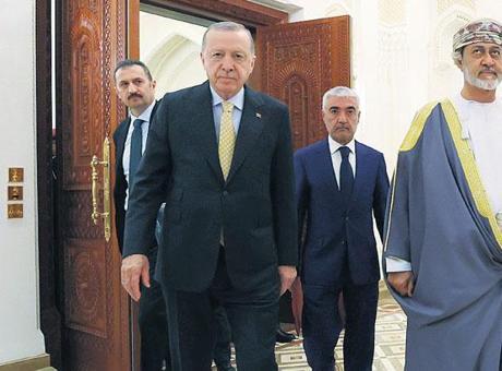 Cumhurbaşkanı Recep Tayyip Erdoğan’ın üç günlük Körfez turunun son durağı Umman oldu. Erdoğan, başkent Maskat’taki programının ikinci gününde Sultan Heysem bin Tarık ile görüştü. Al Alam Sarayı’ndaki görüşme, basına kapalı gerçekleşti. Cumhurbaşkanlığı İletişim Başkanlığı’ndan yapılan açıklamaya göre görüşmede, ikili ilişkiler, bölgesel ve küresel konular ele alındı.