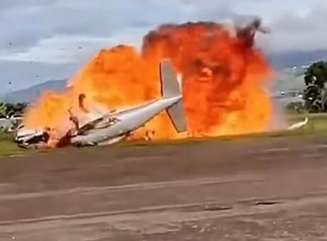 Görgü tanıklarının çektiği dehşet verici görüntülerde, Cheyenne model uçağın yerden yeni kalkarken dengesini kaybettiği ve bir kanadının üzerine düşerek devasa bir alev topuna dönüştüğü görüldü. Tanıklar, uçağın kalkış sırasında sorun yaşadığını fark ettiklerinde çığlık attı.