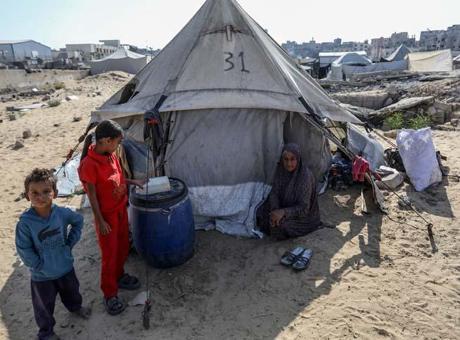Yerinden edilen Filistinliler, mezarlıklarda kurdukları çadırlarda yaşam mücadelesi veriyor